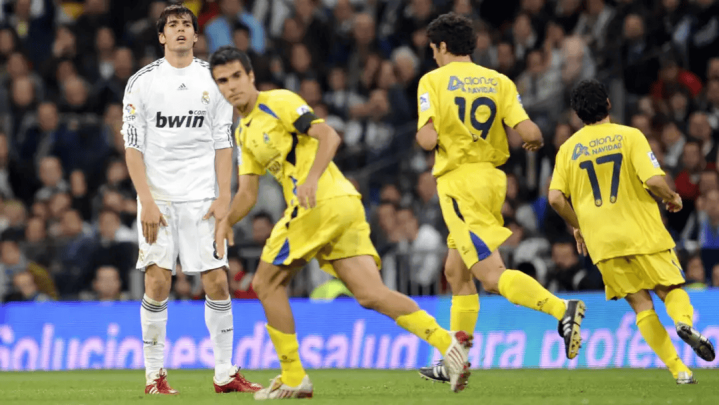 (配图:2009-10赛季国王杯第四轮,阿尔科孔在主场4-0大胜皇马,最终他们两回合4-1淘汰皇马晋级)